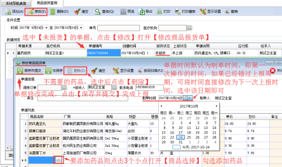 Q:報(bào)貨單已經(jīng)提交,但是有藥品報(bào)錯(cuò)了,或者想再添加藥品需要怎么處理呢?